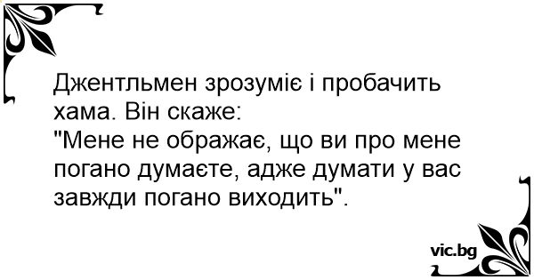 "Мене не ображає, що ви про мене погано думаєте, адже думати у вас завжди погано виходить".