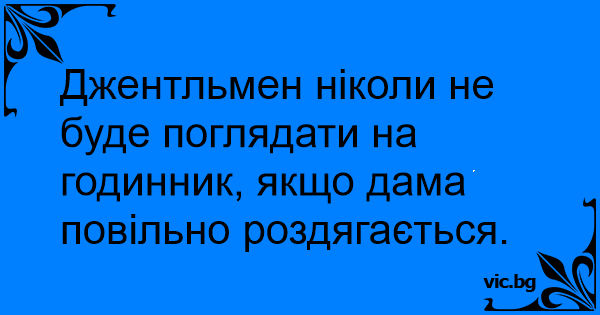 Джентльмен ніколи не буде поглядати на годинник, якщо дама повільно роздягається.