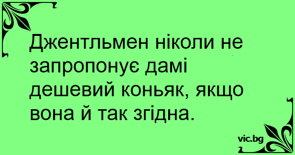 Джентльмен ніколи не запропонує дамі дешевий коньяк, якщо вона й так згідна.