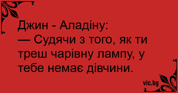 — Судячи з того, як ти треш чарівну лампу, у тебе немає дівчини.