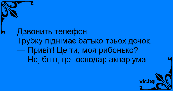 Ѕвони телефонот. На телефон се јавува таткото на три ќерки. - Здраво! - Ти ли си рипче мое? - Не, овде е сопственикот на аквариумот!