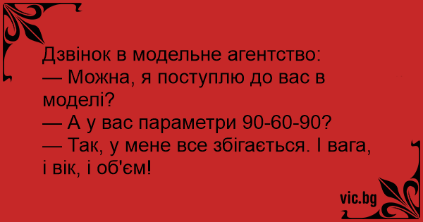 — Так, у мене все збігається. І вага, і вік, і об'єм!