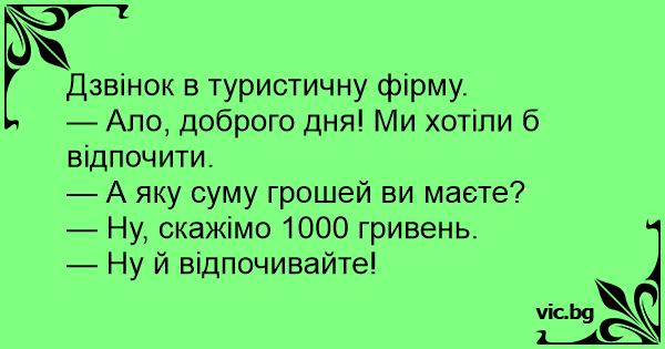 — Ало, доброго дня! Ми хотіли б відпочити.