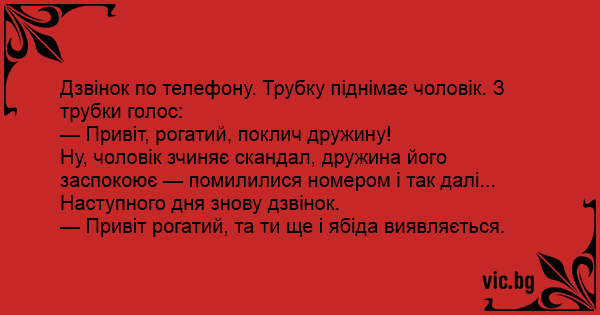 Дзвінок по телефону. Трубку піднімає чоловік. З трубки голос: