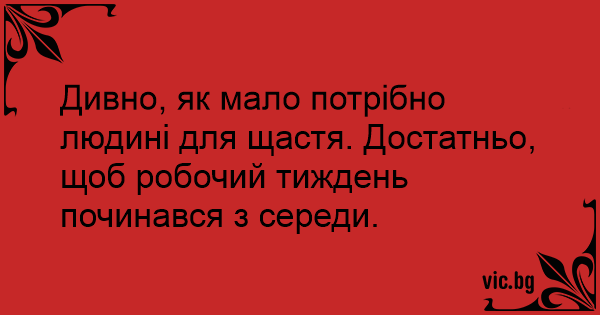 Дивно, як мало потрібно людині для щастя. Достатньо, щоб робочий тиждень починався з середи.