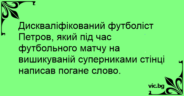 Дискваліфікований футболіст Петров, який під час футбольного матчу на вишикуваній суперниками стінці написав погане слово.