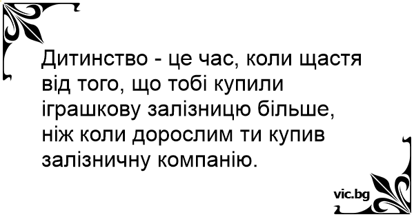 Дитинство - це час, коли щастя від того, що тобі купили іграшкову залізницю більше, ніж коли дорослим ти купив залізничну компанію.