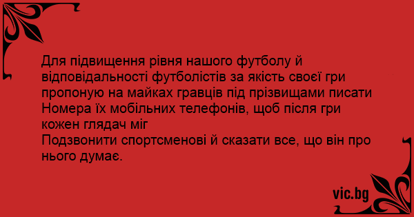 Для підвищення рівня нашого футболу й відповідальності футболістів за якість своєї гри пропоную на майках гравців під прізвищами писати