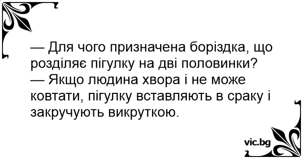 — Якщо людина хвора і не може ковтати, пігулку вставляють в сраку і закручують викруткою.