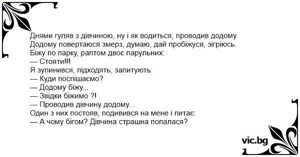 — А чому бігом? Дівчина страшна попалася?