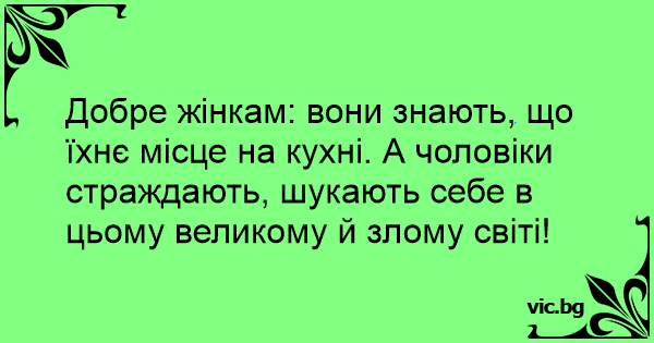 Добре жінкам: вони знають, що їхнє місце на кухні. А чоловіки страждають, шукають себе в цьому великому й злому світі!