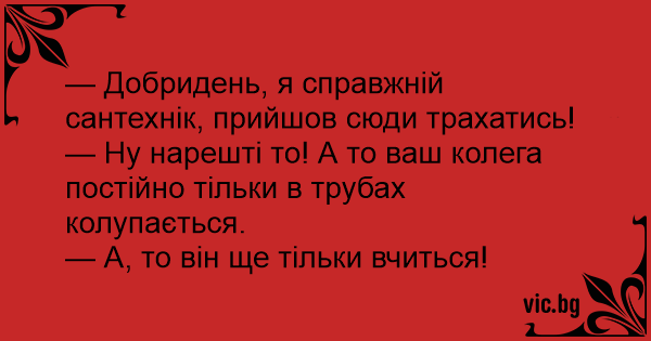 — Добридень, я справжній сантехнік, прийшов сюди трахатись!