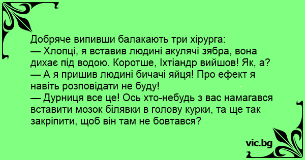 — А я пришив людині бичачі яйця! Про ефект я навіть розповідати не буду!