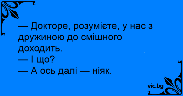 — Докторе, розумієте, у нас з дружиною до смішного доходить.