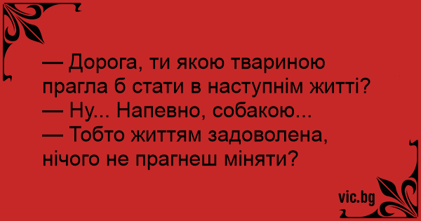 — Дорога, ти якою твариною прагла б стати в наступнім житті?