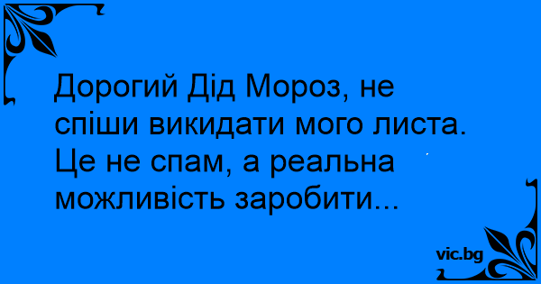 Дорогий Дід Мороз, не спіши викидати мого листа. Це не спам, а реальна можливість заробити...