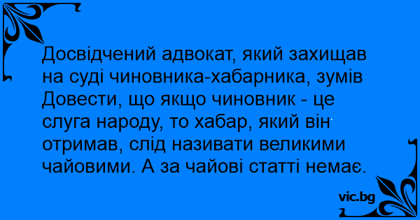 Довести, що якщо чиновник - це слуга народу, то хабар, який він отримав, слід називати великими чайовими. А за чайові статті немає.