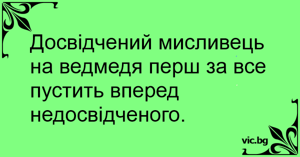 Досвідчений мисливець на ведмедя перш за все пустить вперед недосвідченого.
