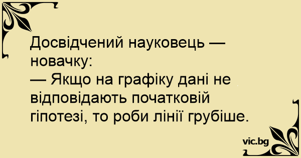 — Якщо на графіку дані не відповідають початковій гіпотезі, то роби лінії грубіше.