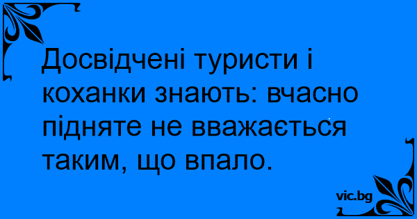 Досвідчені туристи і коханки знають: вчасно підняте не вважається таким, що впало.