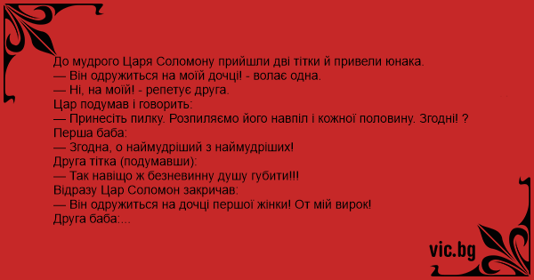 Відразу Цар Соломон закричав: