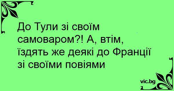 До Тули зі своїм самоваром?! А, втім, їздять же деякі до Франції зі своїми повіями
