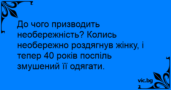 До чого призводить необережність? Колись необережно роздягнув жінку, і тепер 40 років поспіль змушений її одягати.