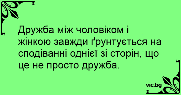 Дружба між чоловіком і жінкою завжди ґрунтується на сподіванні однієї зі сторін, що це не просто дружба.