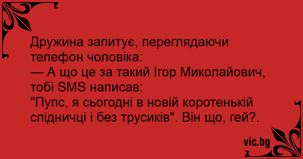 — А що це за такий Ігор Миколайович, тобі SMS написав: