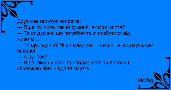 — Яша, якщо у тебе пропаде живіт, ти побачиш справжню причину для смутку!