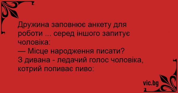 Дружина заповнює анкету для роботи ... серед іншого запитує чоловіка: