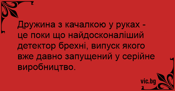 Дружина з качалкою у руках - це поки що найдосконаліший детектор брехні, випуск якого вже давно запущений у серійне виробництво.