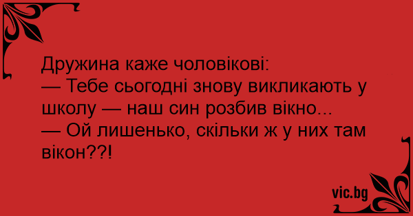— Тебе сьогодні знову викликають у школу — наш син розбив вікно...