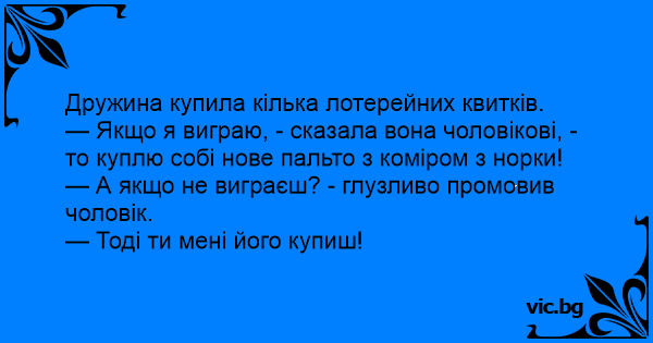 — Якщо я виграю, - сказала вона чоловікові, - то куплю собі нове пальто з коміром з норки!