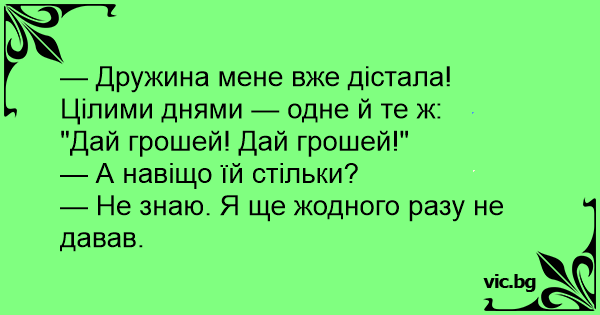 — Дружина мене вже дістала! Цілими днями — одне й те ж:
