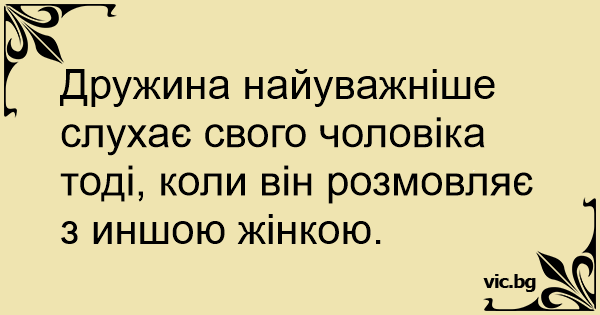 Дружина найуважніше слухає свого чоловіка тоді, коли він розмовляє з иншою жінкою.