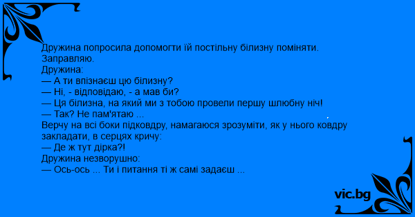 — Ця білизна, на який ми з тобою провели першу шлюбну ніч!