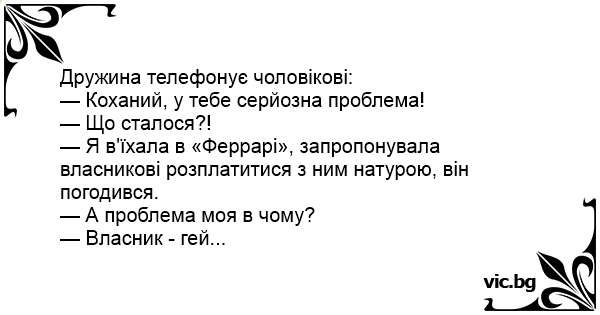 — Я в'їхала в «Феррарі», запропонувала власникові розплатитися з ним натурою, він погодився.