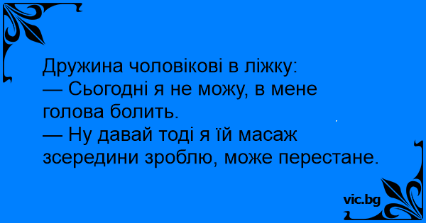 — Ну давай тоді я їй масаж зсередини зроблю, може перестане.