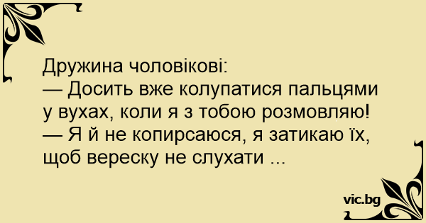 — Досить вже колупатися пальцями у вухах, коли я з тобою розмовляю!