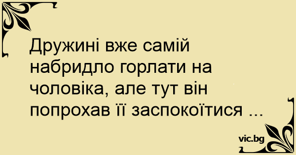 Дружині вже самій набридло горлати на чоловіка, але тут він попрохав її заспокоїтися ...