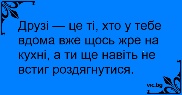 Друзі — це ті, хто у тебе вдома вже щось жре на кухні, а ти ще навіть не встиг роздягнутися.