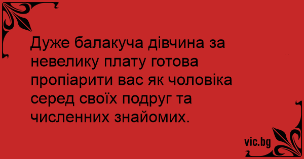 Дуже балакуча дівчина за невелику плату готова пропіарити вас як чоловіка серед своїх подруг та численних знайомих.