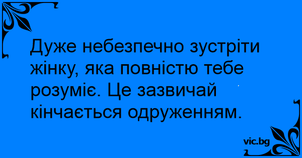 Дуже небезпечно зустріти жінку, яка повністю тебе розуміє. Це зазвичай кінчається одруженням.