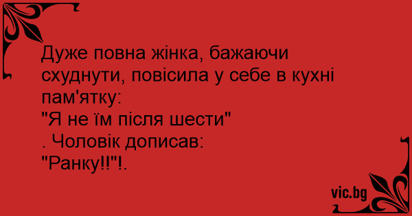 Дуже повна жінка, бажаючи схуднути, повісила у себе в кухні пам'ятку:
