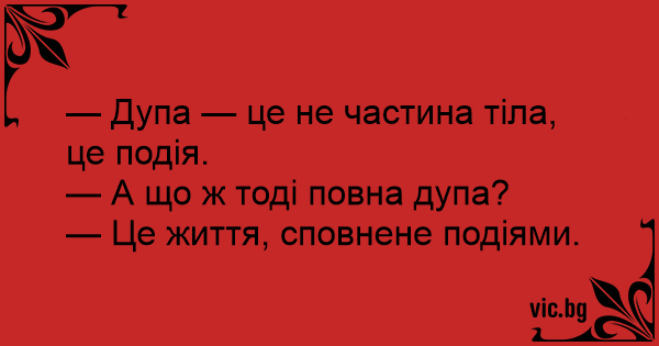 — Дупа — це не частина тіла, це подія.