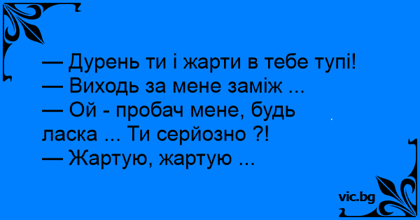 — Дурень ти і жарти в тебе тупі!