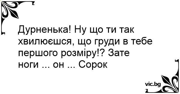 Дурненька! Ну що ти так хвилюєшся, що груди в тебе першого розміру!? Зате ноги ... он ... Сорок четвертого!