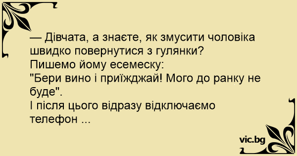 — Дівчата, а знаєте, як змусити чоловіка швидко повернутися з гулянки?