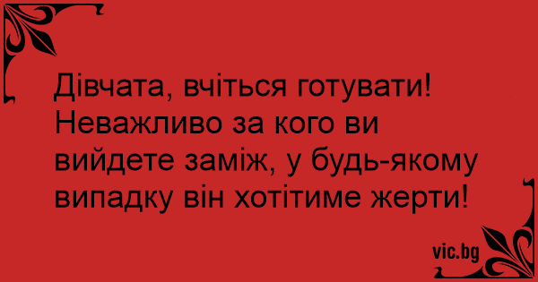 Неважливо за кого ви вийдете заміж, у будь-якому випадку він хотітиме жерти!